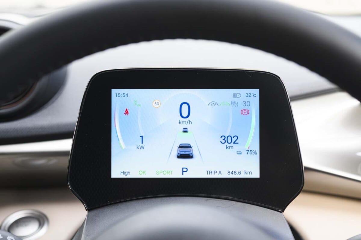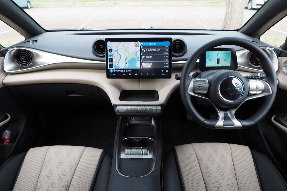 ドルフィンで注目なのは輸入車ながら、徹底して日本市場にローカライズされていることです。たとえば全高は、グローバルでは1570mmなのですが、日本仕様だけは回転式駐車場制限に合わせて20mm低くしています。それだけじゃありません。ウインカーレバーを中国本国の左側から右側に変更したほか、急速充電についても日本で一般的なチャデモ方式を採用。そして、日本では装着が義務づけられている誤発進抑制システムや、各種機能の日本語による音声認識機能までも追加しているのです。