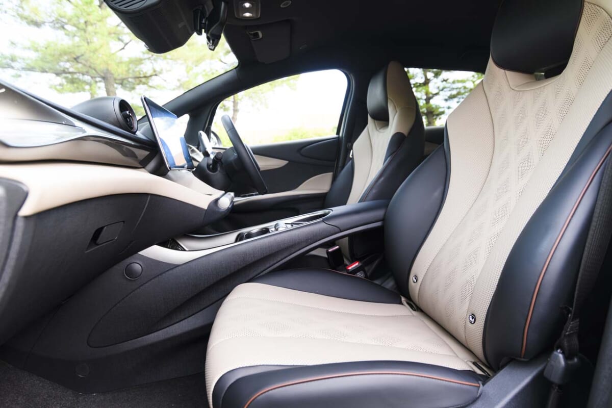 最初に試乗したのはモーター出力を抑えたスタンダードからでした。とはいえ、アクセルを踏むと、車重が1520kgもある印象はまるでなく、スムーズに発進していきます。街中は「エコモード」で走りましたが、もたつく印象は一切なく、ハンドリングは軽めながらも左右の見切りがいいので不安を感じさせません。決して速さは感じませんが、軽くアクセルを踏むだけで交通の流れに乗れるので、運転はとてもラクに感じました。