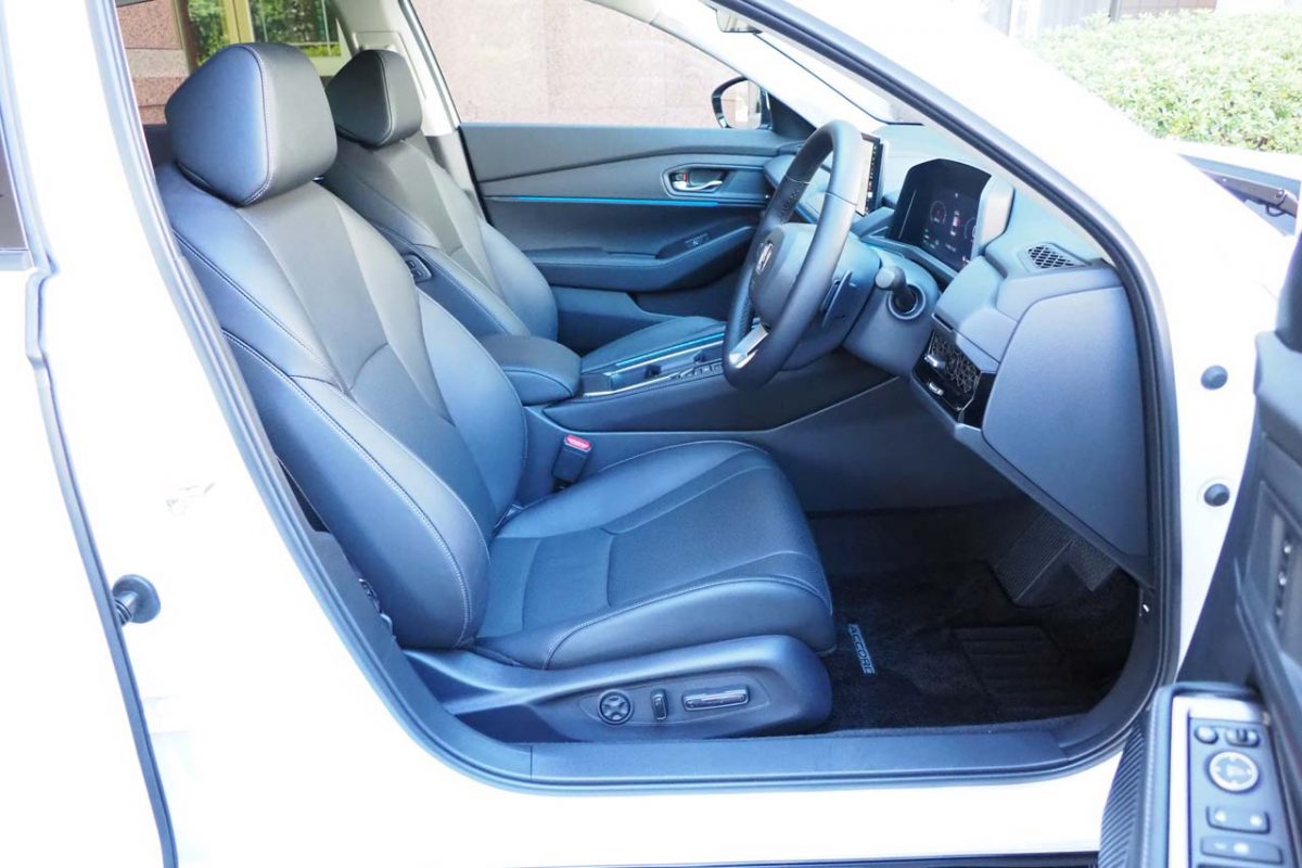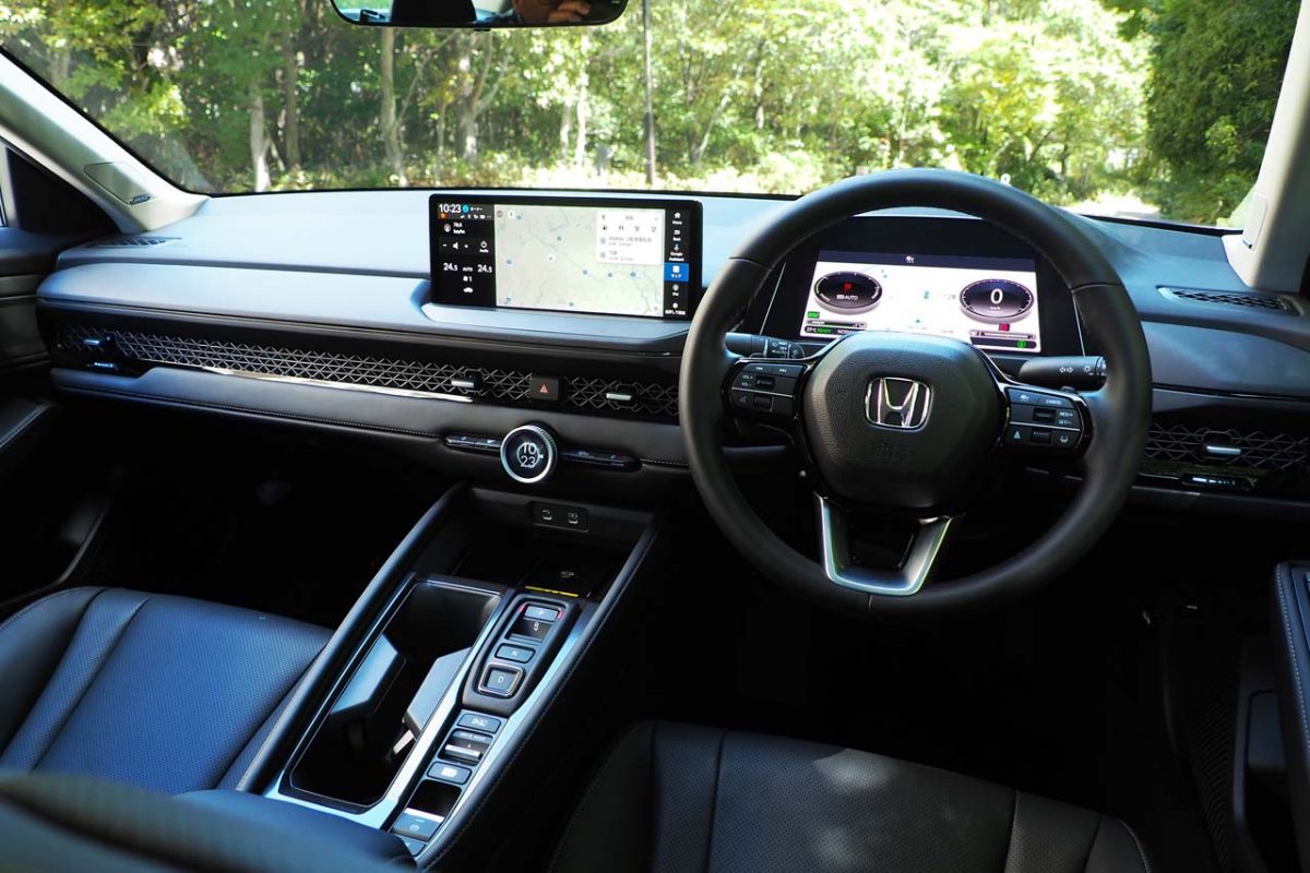 インテリアは、最近のホンダに多い水平基調のデザインの中に統一感のあるコーディネイトを採用したプレーンな印象。これが開放的でノイズの少ない、優れた前方視界を確保しています。手に触れる部分にはソフト素材をふんだんに採用しており、触感からして上質さをしっかりと伝えてきます。また、クラストップレベルの広さを持つ車内空間は、大人4人(定員は5名)がゆったりとくつろいで移動できる十分な広さとなっていました。