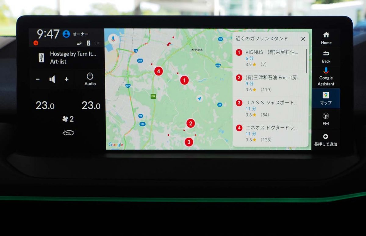 Google ビルトインは、OSにAndroidを採用したもので、アコードのダッシュボード上に設置されたインフォテイメントシステムに組み込まれています。ディスプレイは12.3インチとホンダ車としては最大クラスのサイズ。スマホやタブレットのようにタッチ操作ができるほか、Google アシスタントの音声コマンドを活用してGoogle マップで目的地設定、残燃料や走行距離の確認やエアコンの温度調節などが可能となっています。