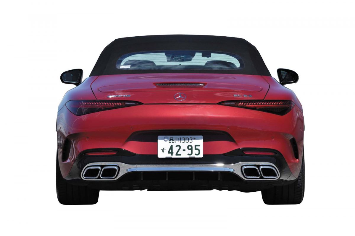 SLは、その源流を辿ると1950年代の純レーシングカーに行き着く伝統あるモデル。しかし今回の新型ではメルセデス・ベンツブランドから離れ、メルセデスAMGの専用車となった。先代と比較すると、ボディはコンパクトに引き締まる一方、搭載するハードウエアはAMGを名乗るに相応しい高性能ぶり。また、オープンカーの見せ場であるルーフがリトラクタブルハードトップからソフトトップに回帰したことも目を引くが、後席が用意され乗車定員が4名となったこともトピックのひとつに挙げられるだろう。