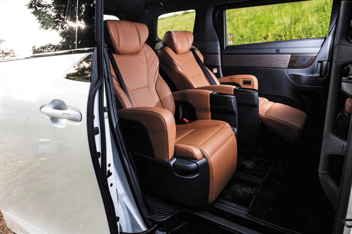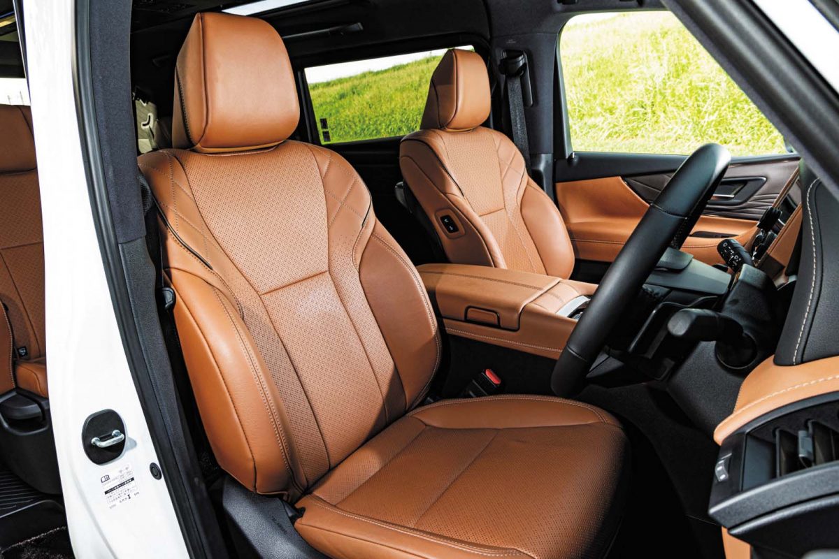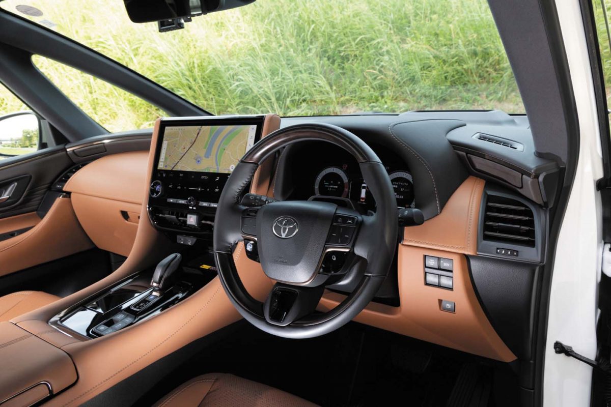 精悍な顔つきに代表される押し出しの強い佇まいは相変わらず。しかし、新型を前にして最初に気付かされるのは質感の高さに一層の磨きがかかっていること。そんな印象は、室内に入るとより鮮明になる。試乗車はヴェルファイアの一番ベーシックなガソリン仕様だったが、適度なタイト感を演出する前席回りはもはやミニバンというよりプレミアムなセダン級。3列目に至るまでゆったりとしたサイズのシートはナッパレザー仕立てで、座り心地もすこぶる良い。特にオットマン付きの2列目は、快適な空調システムやシェード付きガラスルーフの恩恵もあって、極上の居心地を実現している。