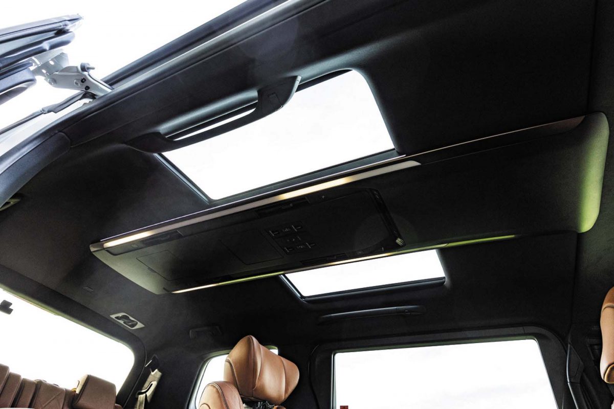 インパネと前席回りは程度なタイト感を演出。プレミアムなセダンにも通じる上質感を誇る。ガラスルーフやオーバーヘッドコンソールなど、ラグジュアリーな装備も充実。