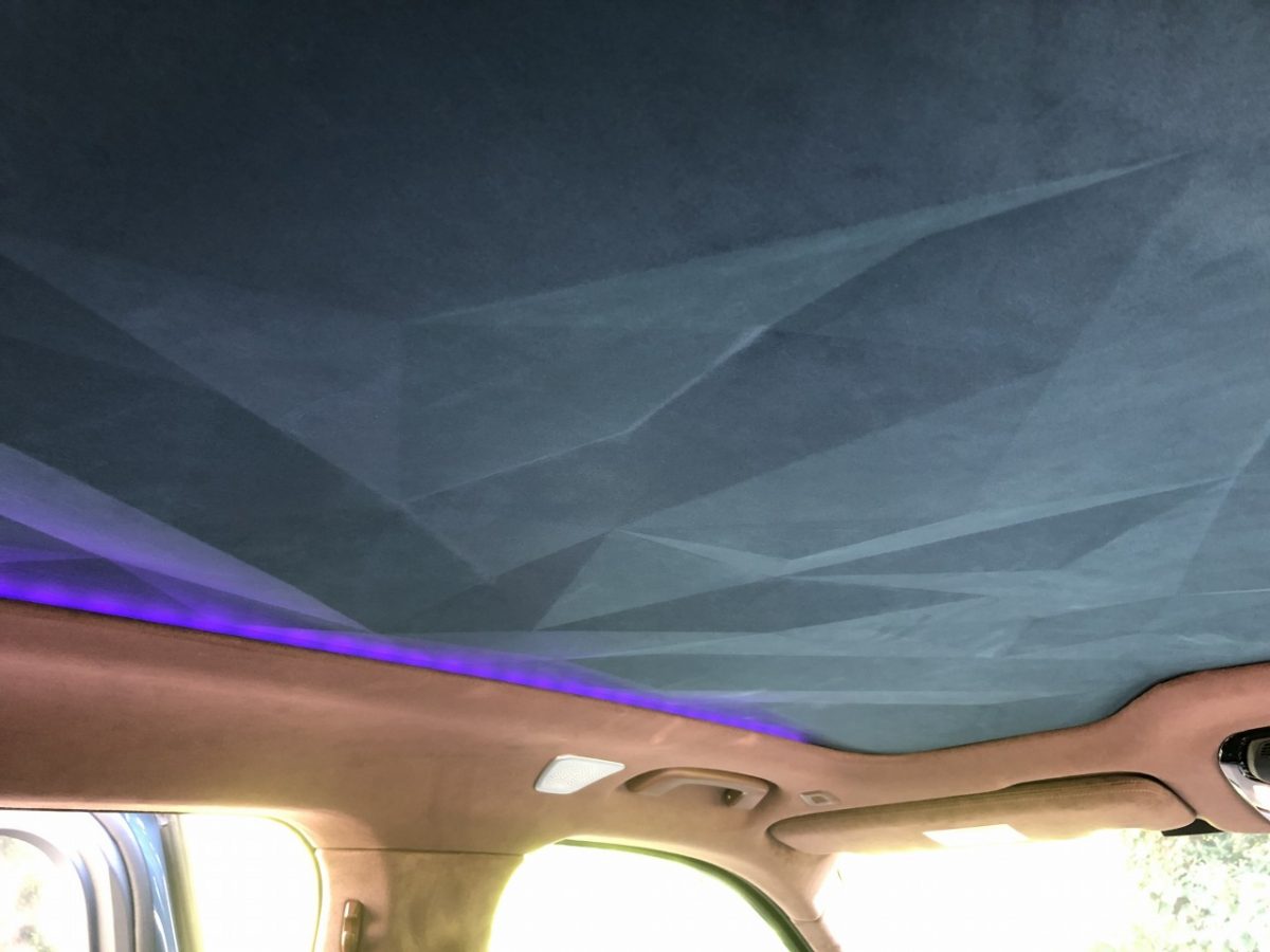 インテリアも豪華そのもの。オラオラしつつも、適度に上品にまとめられているのはエクステリアと同じだ。驚かされるのは天井部の造形で、音響室のように凸凹している。これはいったい何が目的か? と訝ったが、サウンドを美しく聞かせようというわけではなく、夜、ルーフサイドにあしらわれたアンビエントライトで、凸凹を怪しく浮かび上がらせる目的らしい。
