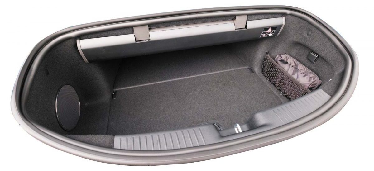 ソフトトップはトランク内上部に収納されますが、パーテーションで区切られているため、トランク内に荷物が入っていても干渉しません。容量はあまり大きいとは言えませんが、後席にも荷物を置けば問題ないでしょう。