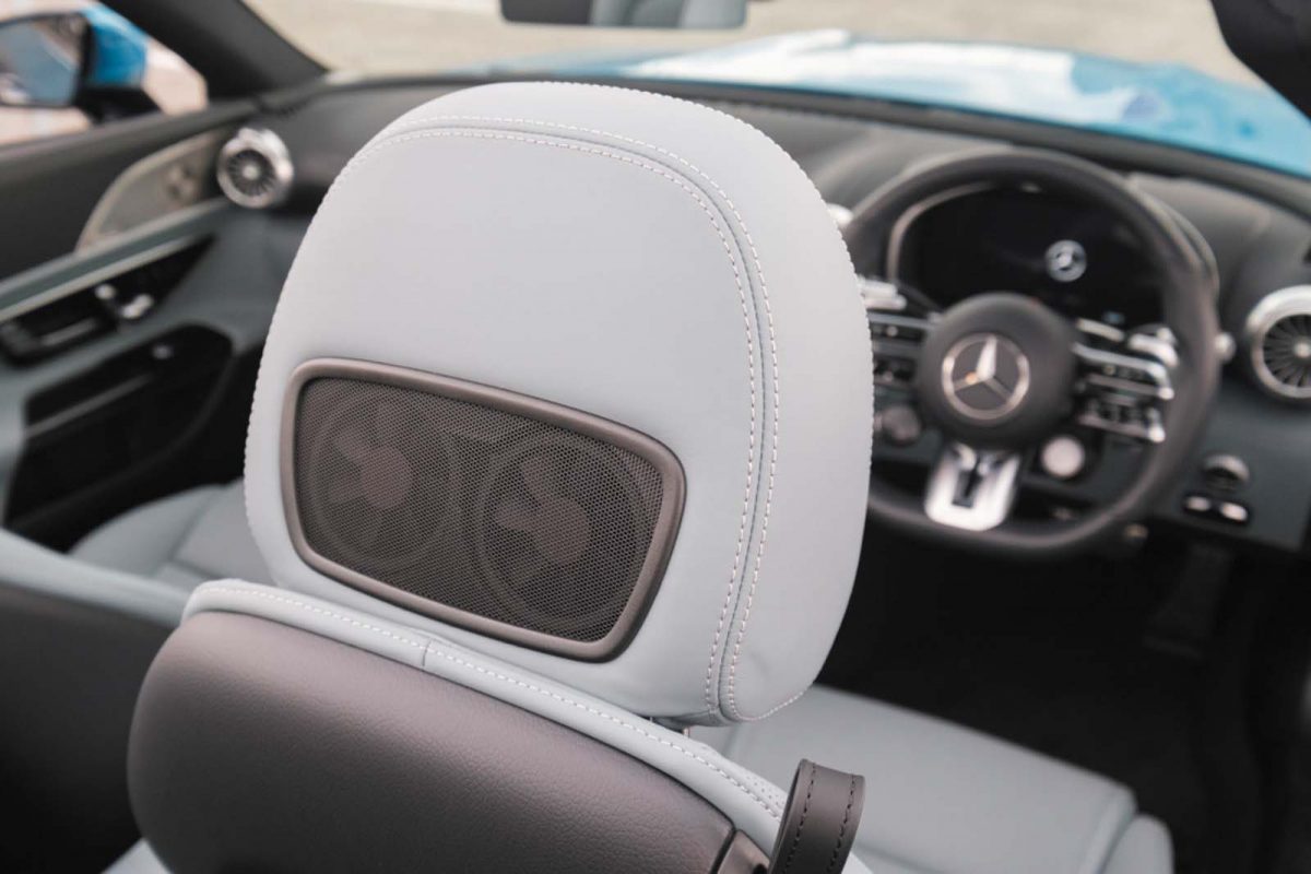 このSLは2グレード構成で、「SL63」は4.0lV8ツインターボエンジン、今回試乗させてもらった「SL43」は2.0l電動ターボエンジンが搭載されています。気筒数が2倍も違うわけですが、価格も約1.7倍になります。お財布と相談ですね。