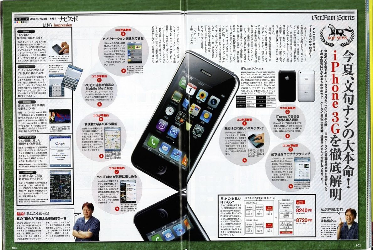 ■iPhone。日本初上陸のiPhoneである「iPhone 3G」がソフトバンクから発売。ソフトバックショップや家電量販店に長蛇の列ができました。PCを使ってインターネットするよりも、スマホを使ってインターネットする時代が始まりました。