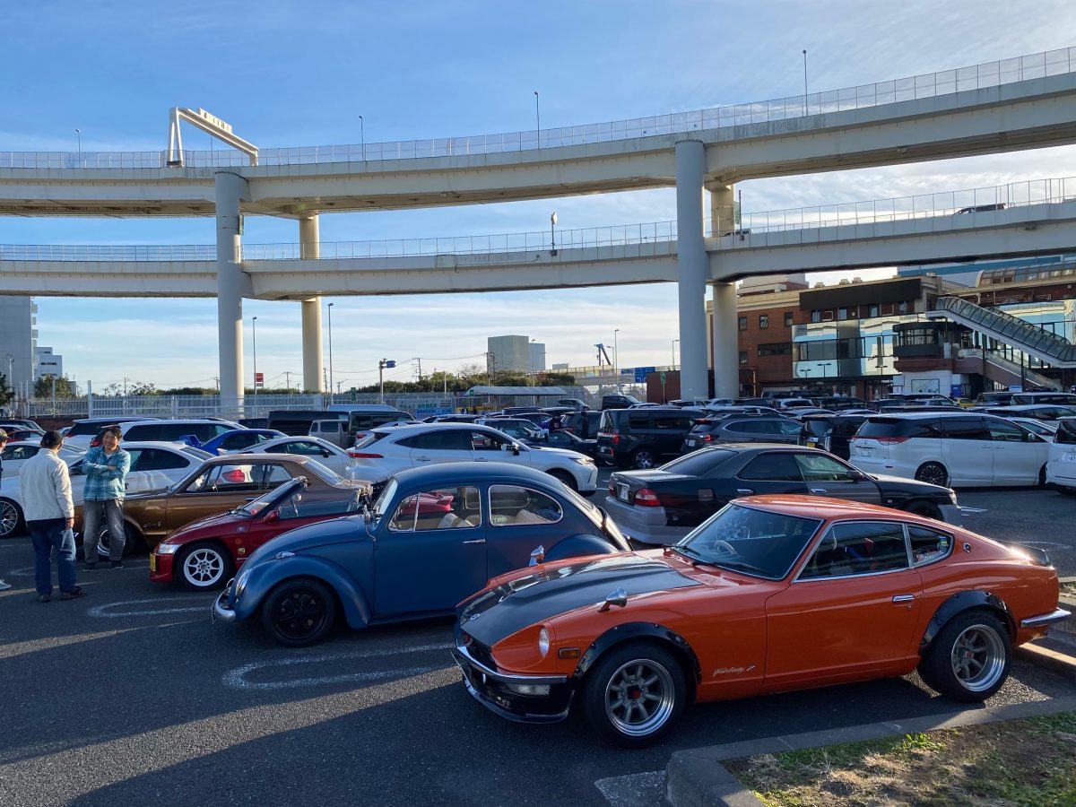 大黒PAは日本国内から集まるクラシックカーやチューニングカー、カスタムカー愛好者が、自らの愛車を誇示し、交流する場として利用されています。首都高速道路を背景に、様々な車種やスタイルが一堂に会する様子は、クルマ好きたちにとってまさに夢のような空間と言えるでしょう。