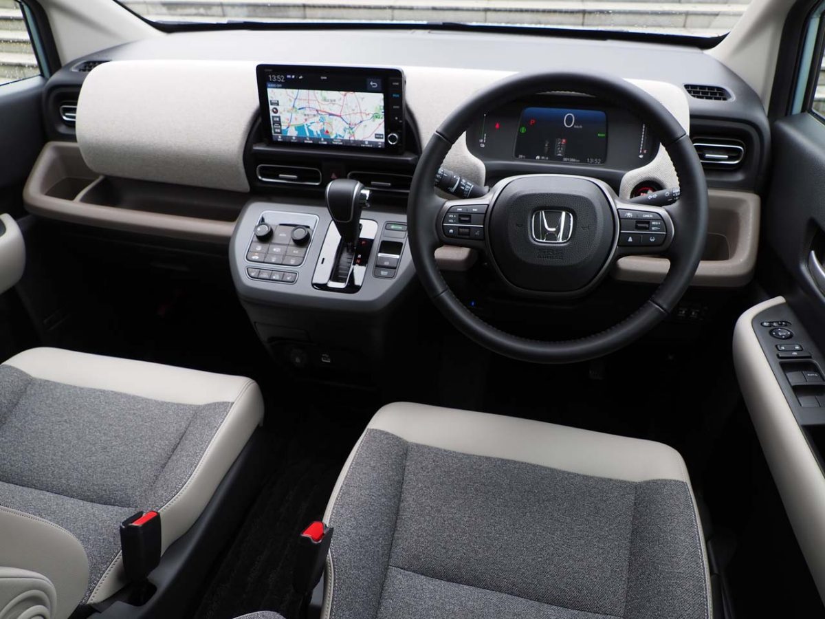 室内に入ると水平基調のダッシュボードが最近のホンダ車らしさを感じさせます。視界も良好で、運転席からは周囲を広々と見渡すことができます。インパネには大容量の収納ボックスや取り出しやすさを追求したトレーを配置。さらに、シートの肩に当たる部分を細身にして後席からの圧迫感を抑えたことで、2列目や3列目のシートからの抜けのいい視界を実現していることも見逃せません。