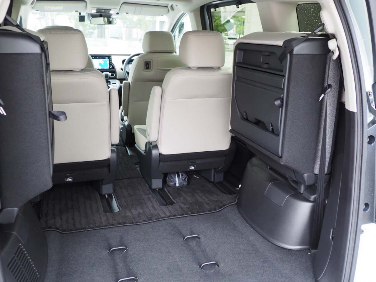 その中で、2列目に座ってもっとも快適だったのは3列6人乗りのキャプテンシートでした。細身ながら身体にフィットする専用シートである上に、左右にアームレストがあることで身体を常に安定させることが可能だったからです。対して、2列5人乗りのシートは2列目がベンチシートとなり、特にe:HEVではフロアが高めとなるために太ももが座面から離れることもあって、乗車中はどうしても不安定になりがち。ミニバンらしい快適さを2列目で感じたいのなら、3列6人乗りのキャプテンシートをおすすめしたいですね。
