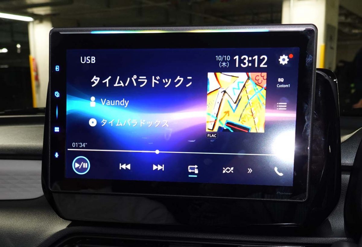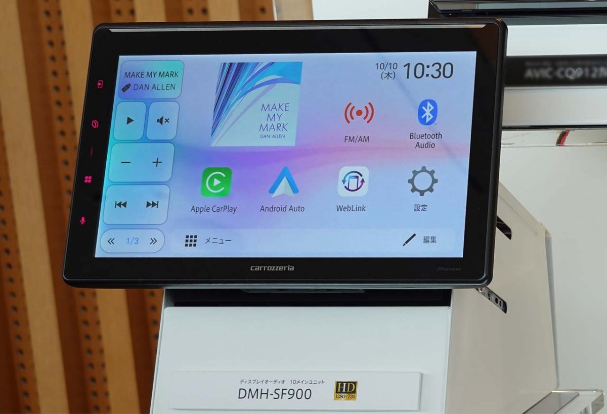 そんな中で投入されたDMH-SF900は、ディスプレイオーディオとしての機能をさらに魅力的なものにするため、ディスプレイを10.1インチもの大型サイズとしました。本体はヨコ178mm×タテ50mmの1DINサイズに取り付けが可能で、ここにフローティング構造としたことで、この大画面を実現できたのです。しかも、取り付け可能な車種は392車種(パイオニア発表)にもおよび、大半の車種で好きなコンテンツがこの大画面上で楽しめるのはうれしいポイントです。