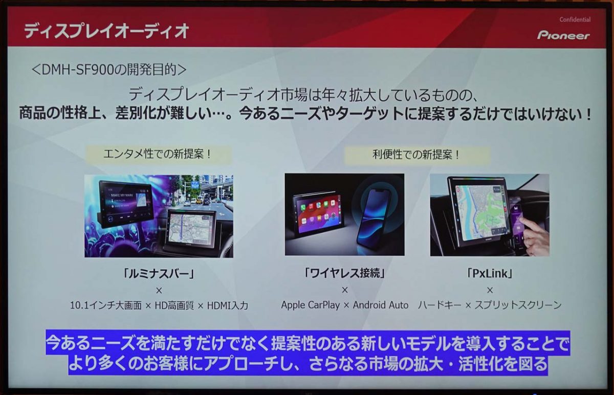 そんな中でもっとも注目された製品が、ディスプレイオーディオ「DMH-SF900」です。発表会でこの製品に触れたところ、その斬新さにぞっこん! そこで今回は、あえてDMH-SF900に絞ってご紹介することにしました。