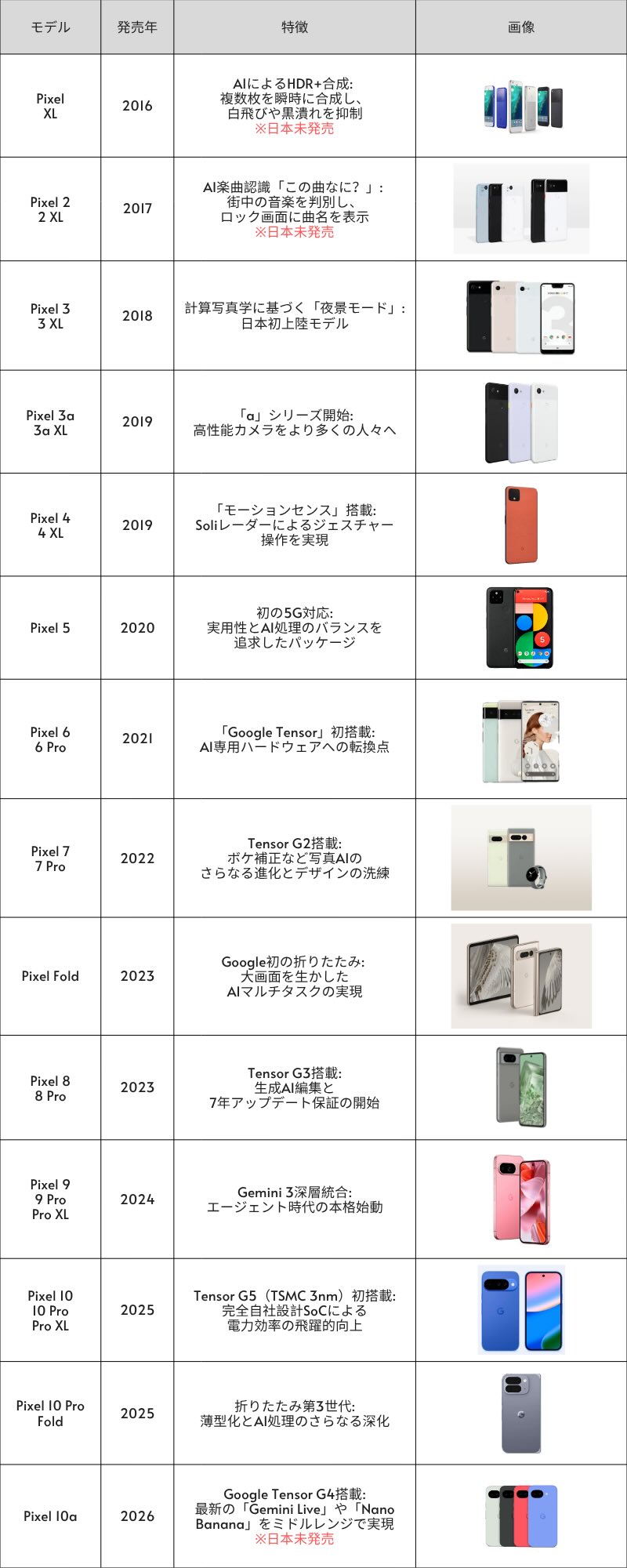 Pixelの歴史は、Googleがいかにして「AIの思考を形にしてきたか」の歴史です。Googleのプロダクトデザイン