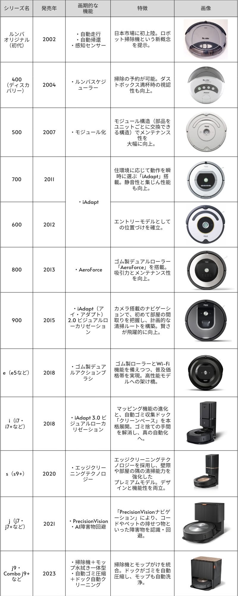 スマートフォン用アプリ「Roomba Home」では、清掃開始通知や履歴グラフ、エリア指定清掃などが可能です。Google Home、Amazon Alexa、Siriなど音声アシスタントにも対応し、たとえば「OK Google、ルンバを動かして」と話すだけで起動できます。また、外出中であってもゴミセンサーが高い数値を検知するとプッシュ通知が届くので、追加掃除をワンタップで指示できます。【年表】ルンバの技術革新史