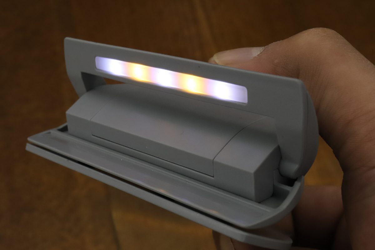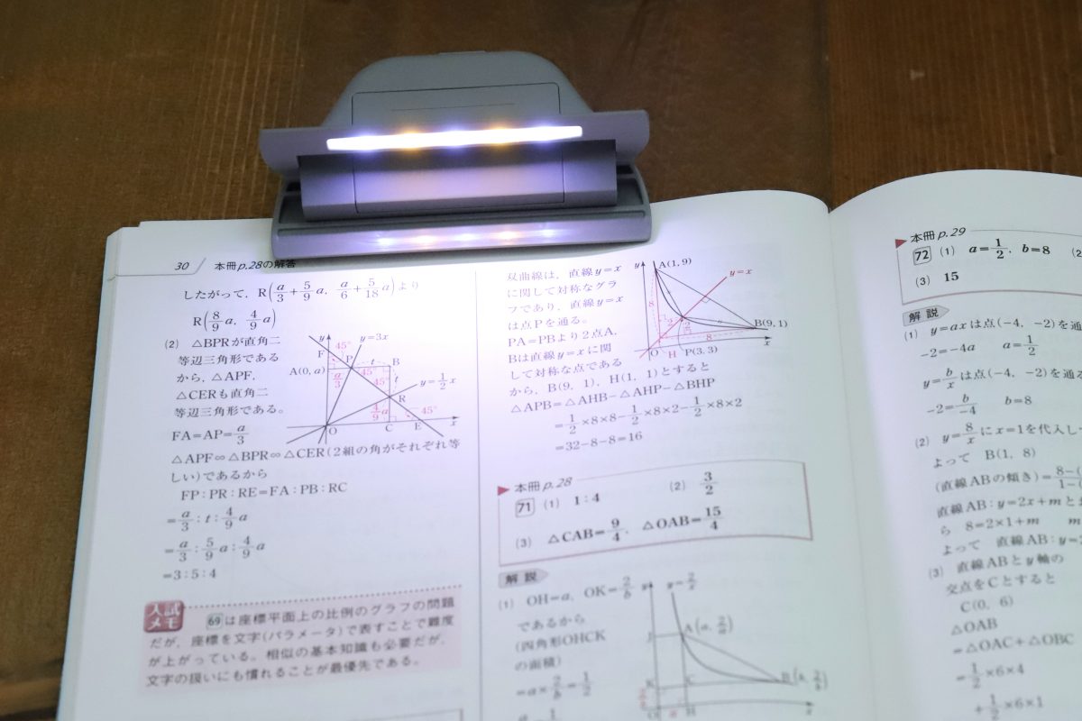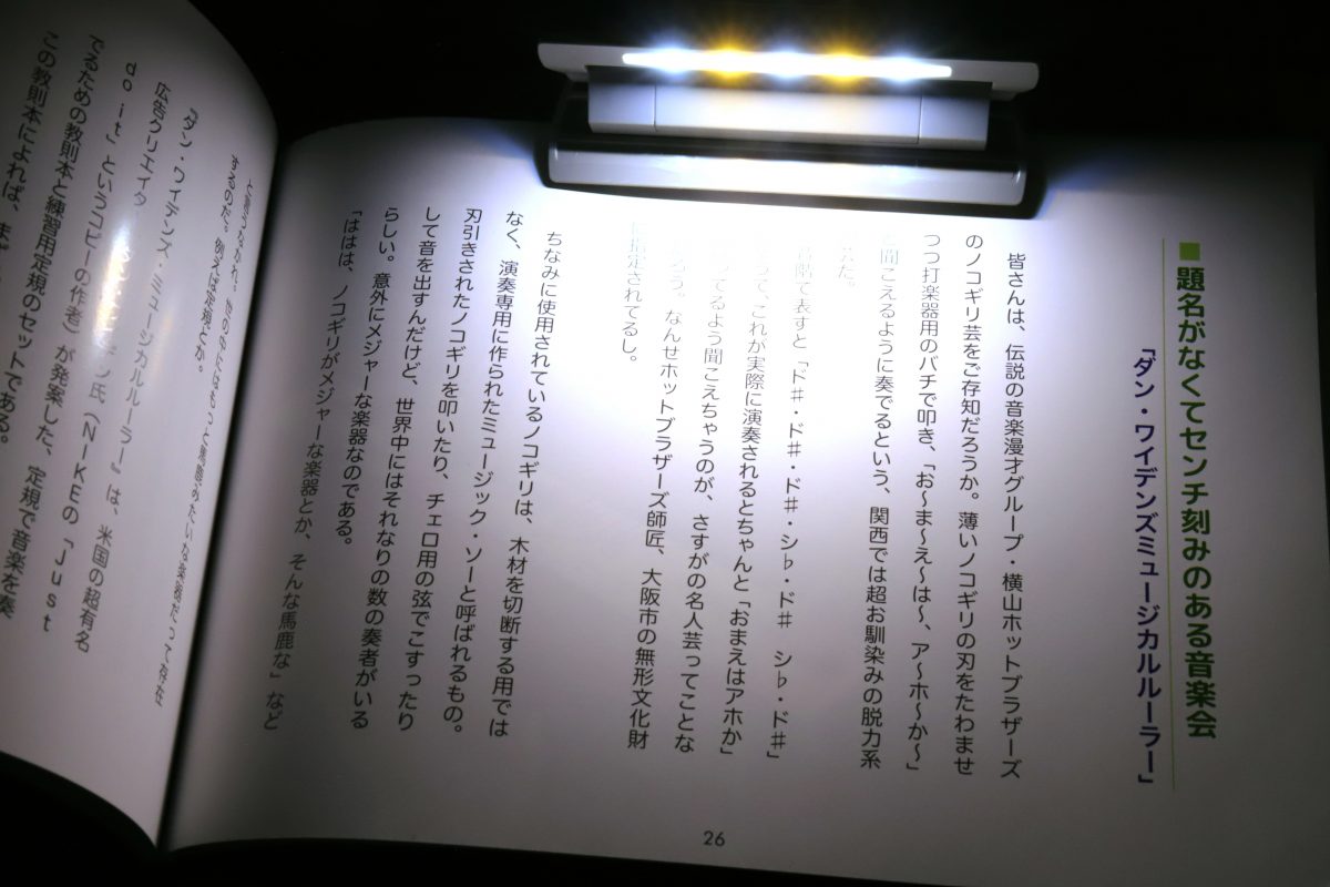 ちなみにライト色は、青みがかった昼光色LEDと、電球色に近い暖かみのある温白色のミックス。これで文字を読むのに最適な色味に調整しているという。光量は控えめだが、光が広く拡散するため、照らしたい部分全体を程よく明るくすることができる。