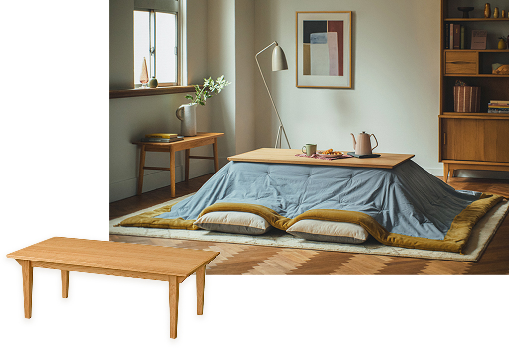 普段の家具選びと同じような感覚で楽しめるのが、モダンなこたつ探しの魅力のひとつ。この冬を暖かく過ごすためにも、ぜひ視野に入れてみてはいかがでしょうか。