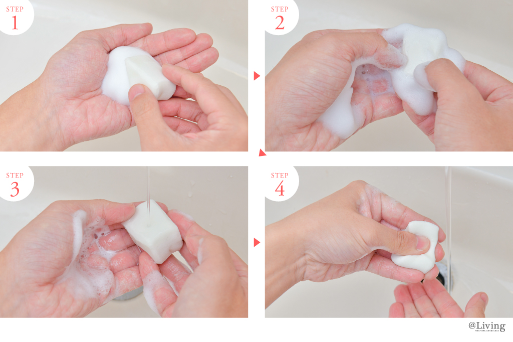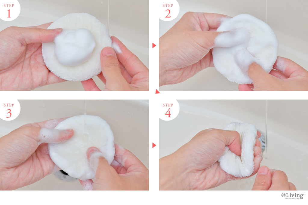1.水かぬるま湯で十分に濡らし、よく泡立てた洗剤をつける