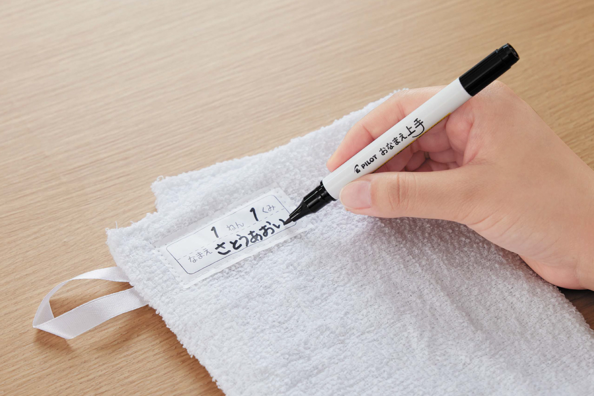 新開発のペン先とインクで、「ペン先が布に引っかかる」、「筆跡がにじむ」、「洗うと薄くなる」といった名前書きペンの弱点を克服。筆記面への密着性が高く、プラスチックやガラスにもくっきり書ける。