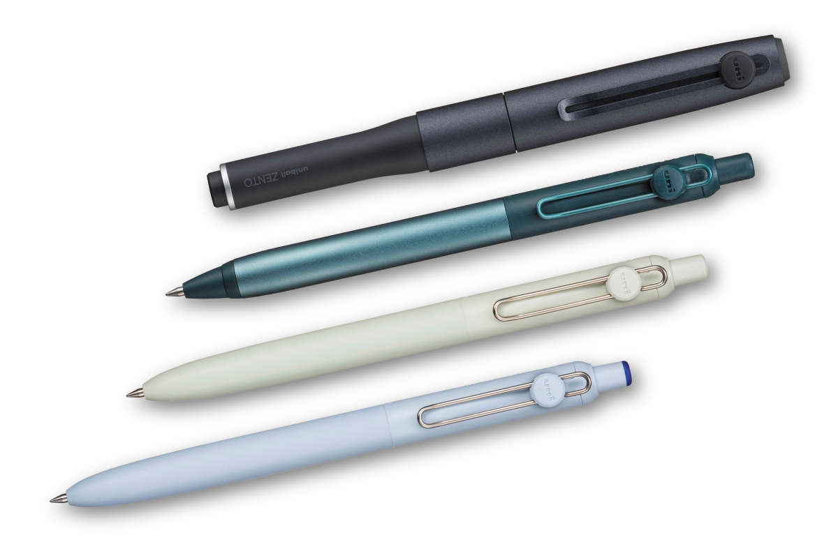 にじみや速乾性を改良した新開発の水性インクを採用したボールペン。クッション成分を配合することで、すいすいとした新感覚の書き心地を生み出した。4モデルあり、シグニチャーモデルのみキャップ式。