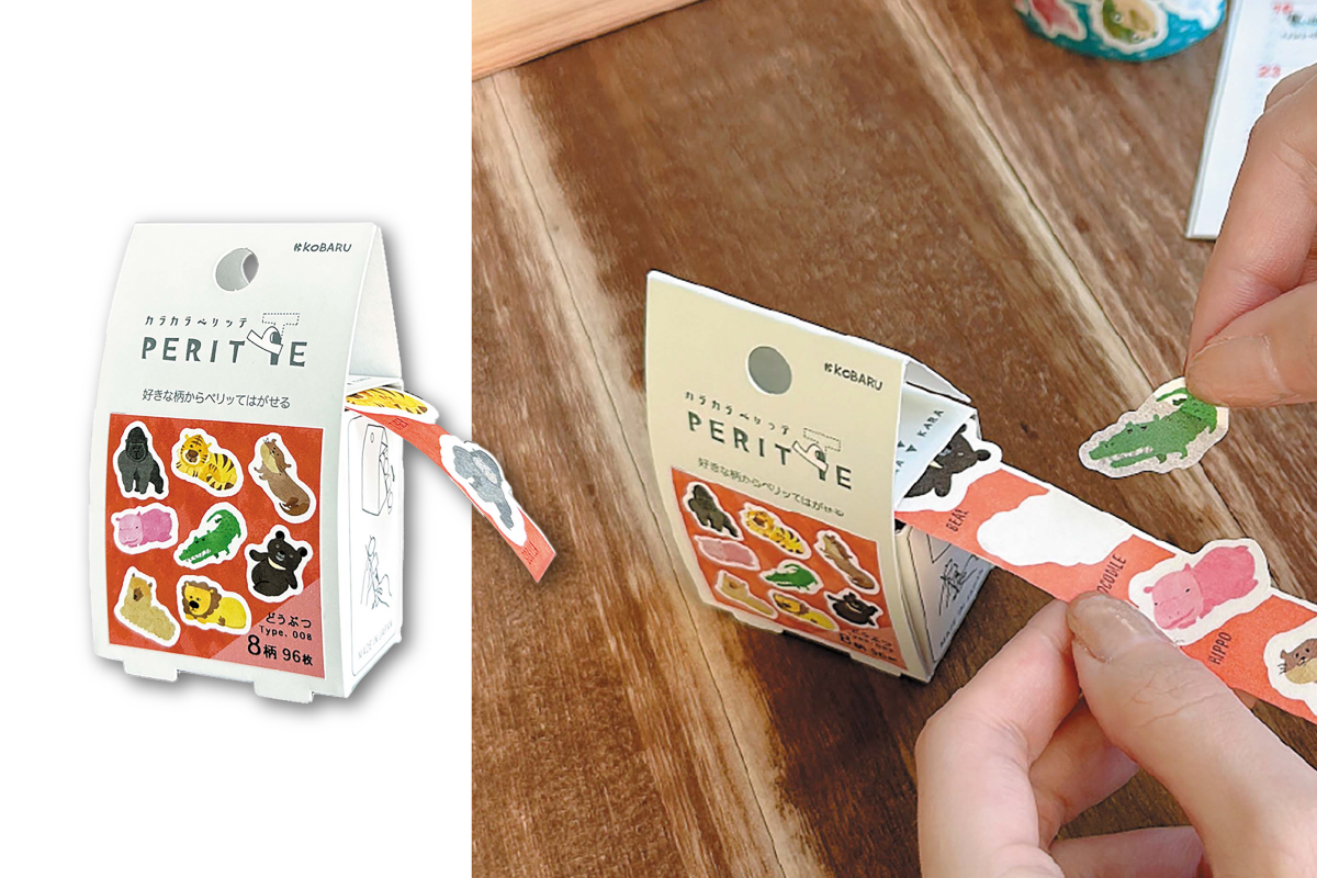 好きなところから剥がして使えるロールタイプのシール。剥がしたシールの粘着面の一部には剥離紙が付いており、付けたままにすればインデックスのようにも使える。引き出しやすく、保管に便利な紙箱入り。