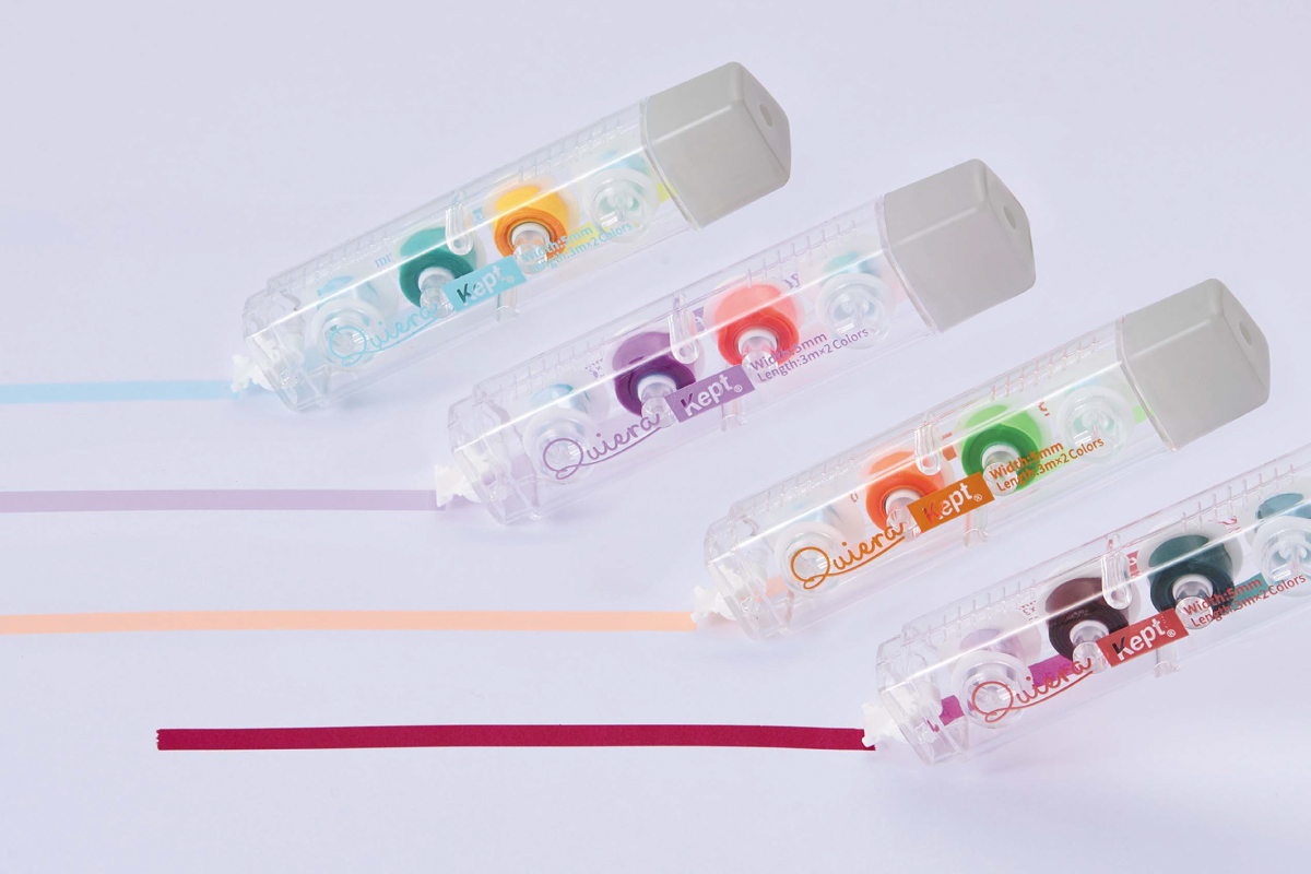 消しゴムで消せるテープ型のラインマーカー。テープのため、蛍光ペンのようににじんだり、裏写りしたりせず、きれいにまっすぐ引ける。各2色入りで4種展開。レッド&グリーンは暗記用としても使える。