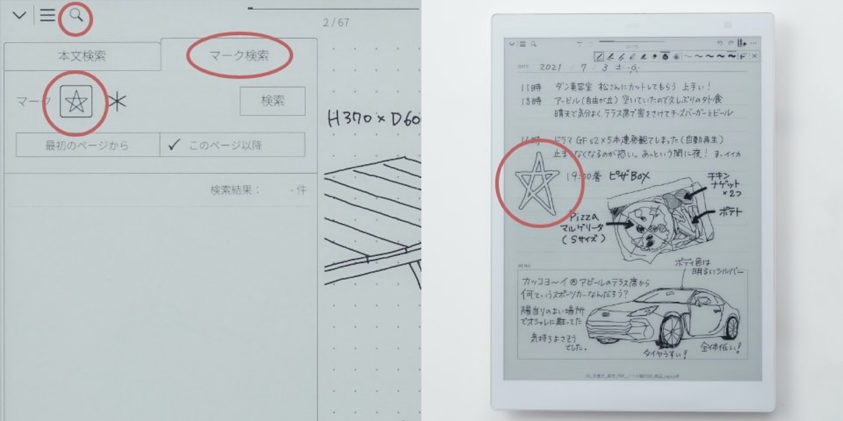 あと、マニアックだけど便利だなと思ったのが、手書きで書き込みをしたページだけを検索できること。漫画の単行本などページ数が多い書類の場合、どのページに赤字があったかわからなくなってしまうのですが、この機能を使えば書き込んだページだけを検索できます。修正原稿が戻ってきて、赤字が全部反映されているかチェックするときに活躍しました。
