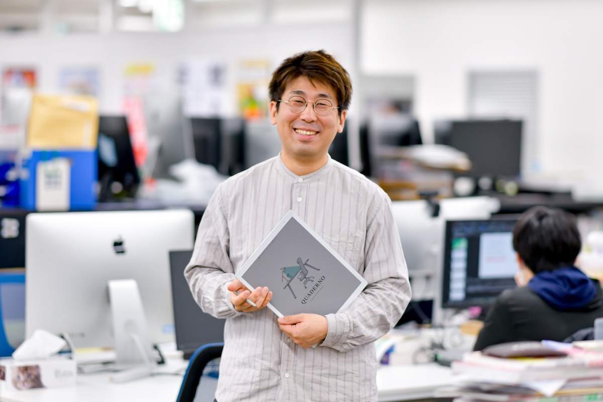QUADERNOがあらゆる職種の人にとってのはかどりツールとなるかを試すために、フィールドワークが多い営業スタッフ・秋山と、オフィスワークが多い編集スタッフ・玉造という業務スタイルが異なる2名に試してもらうことにしました。