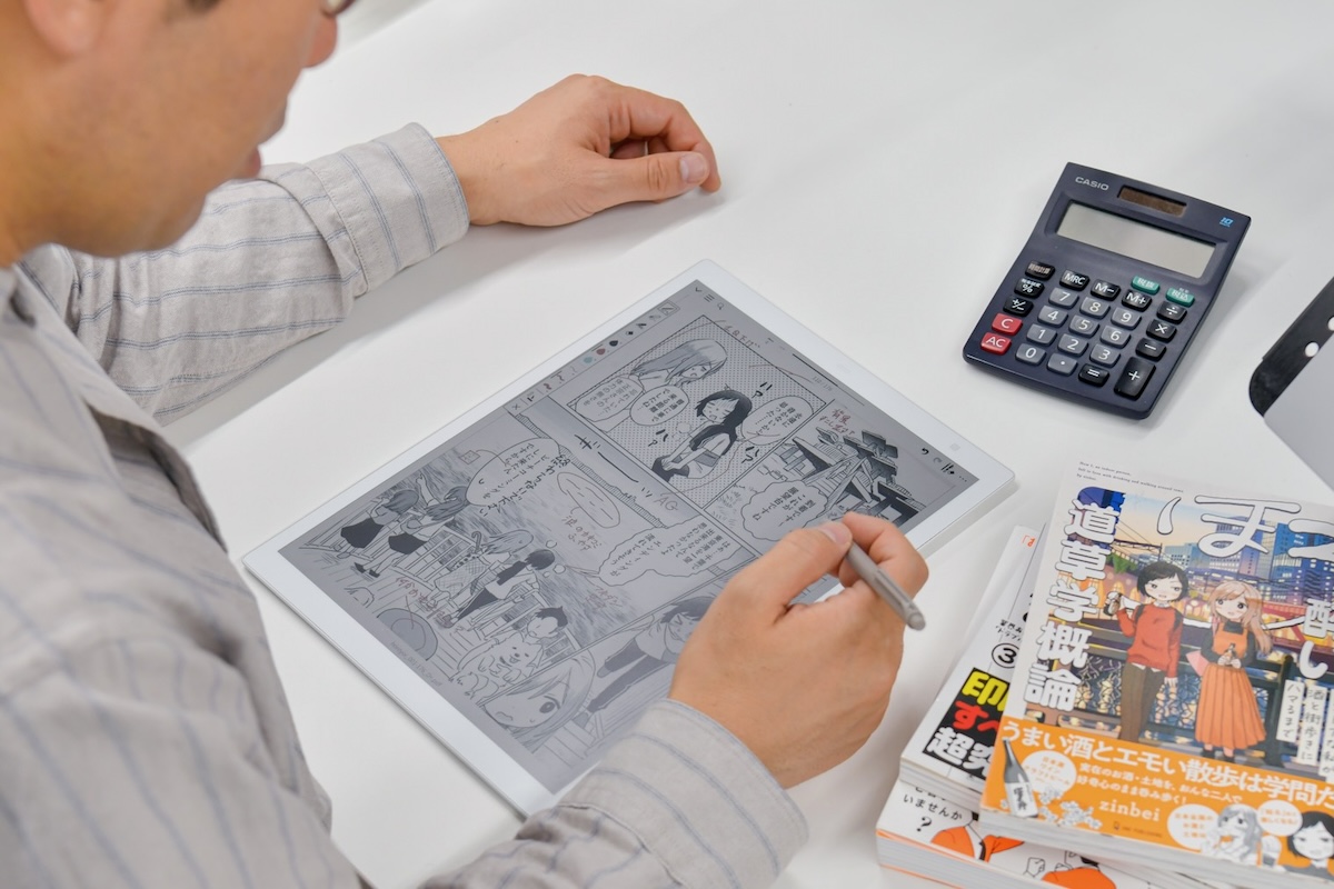 テキスト原稿のチェックにも使ってみましたが、デジタルとはいえ机の上に置いて書き込むからか、紙に出力してチェックするときと感じ方に差がなく、PCの画面で見るときよりも間違いに気付きやすいと思います。