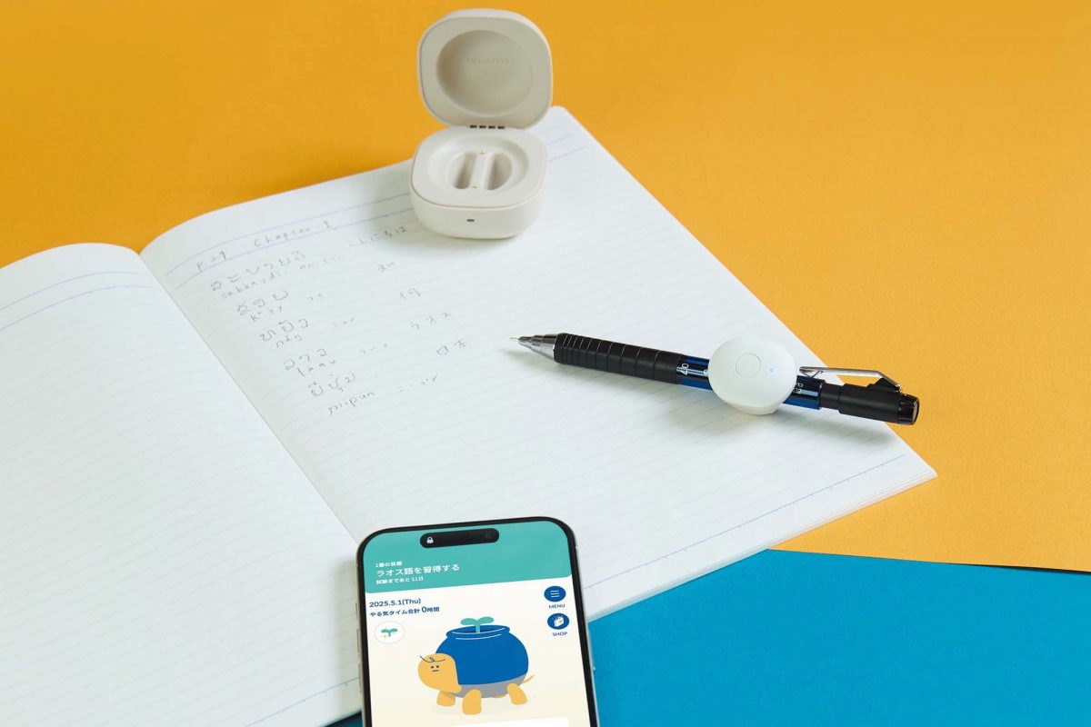 筆記具に装着して使うわずか約8gの軽量ラーニングデバイス。専用アプリと連携させると、勉強時間が記録され努力を見える化できる。Apple Pencilなどのスタイラスにも対応し、デジタルツールユーザーもフォロー。