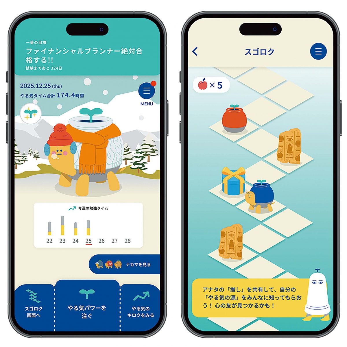 頑張りに応じすごろくが進み、キャラクターの着せ替えもゲットできるゲーム性も搭載。試験の日程などを登録し残日数をカウントしたり、ほかのユーザーと出会ったりと、やる気維持に役立つ機能が満載だ。