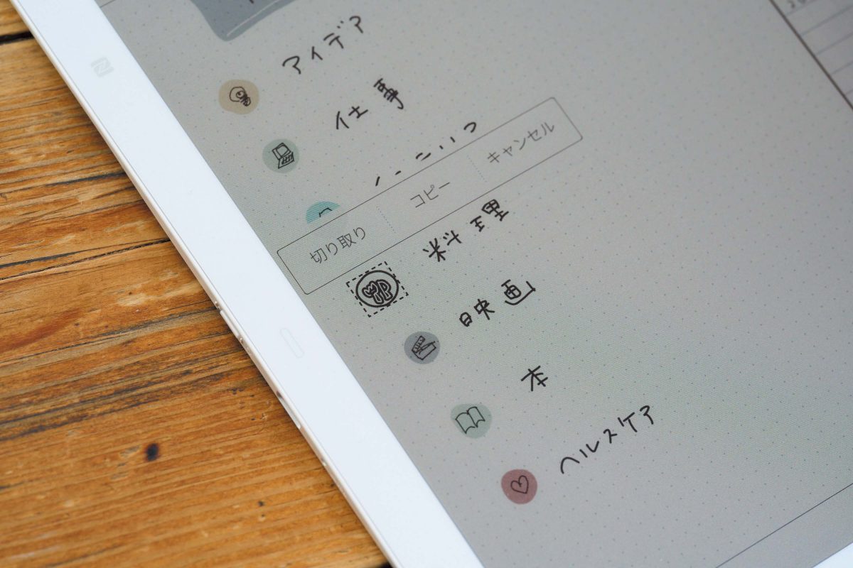 デジタルツールのため、手書きの内容をコピー&ペーストするのは朝飯前。よく使うアイコンやイラストをまとめたページを作っておくと、あとからスタンプのように活用できる。ファイルをまたいでコピペすることも可能だ。