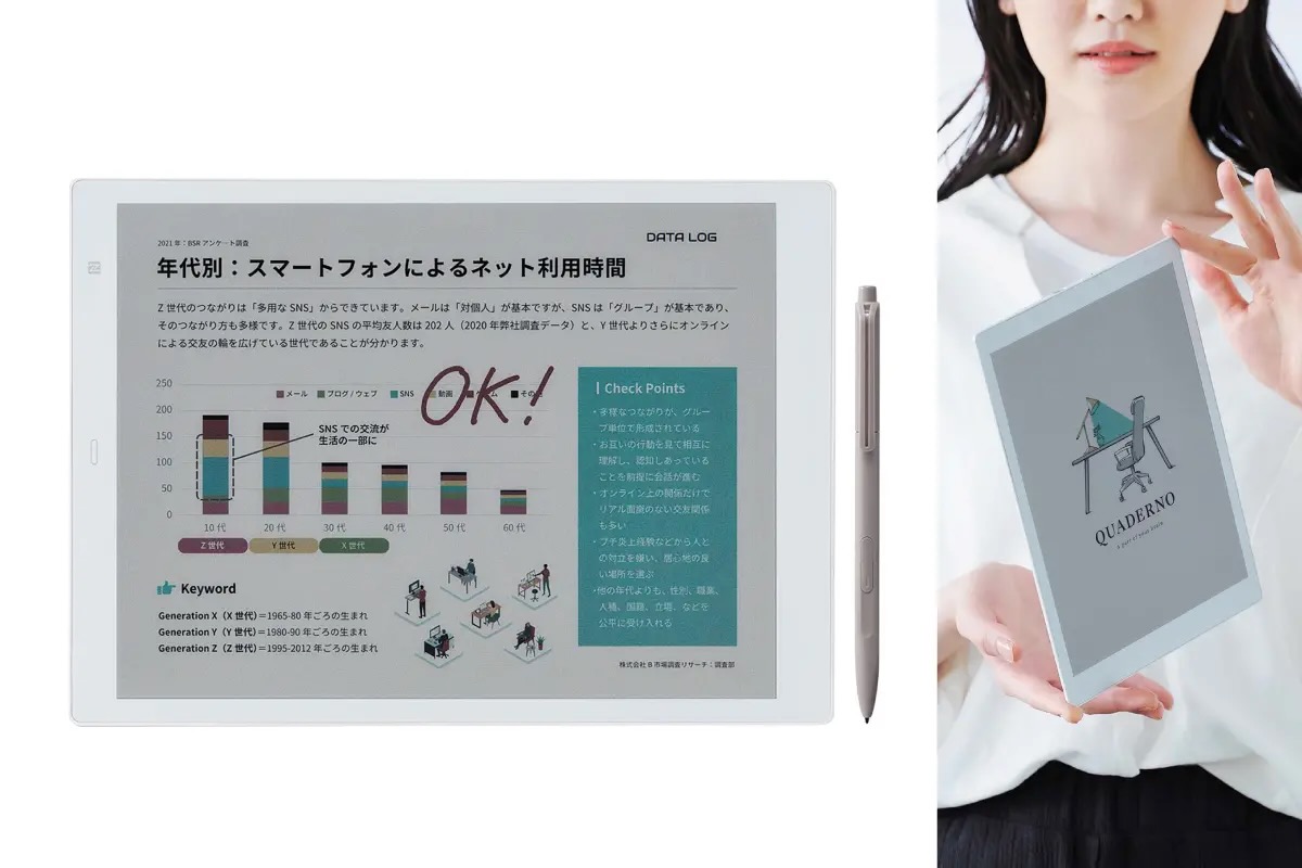 「従来機とほぼ同じ軽さ・薄さでカラー化したことにビックリ! ペンの色数も増え、“書く”に加え“描く”楽しみも深まりました。ソフトをこまめにアップデートし、より使いやすく進化させていく開発姿勢も好感度が高い」