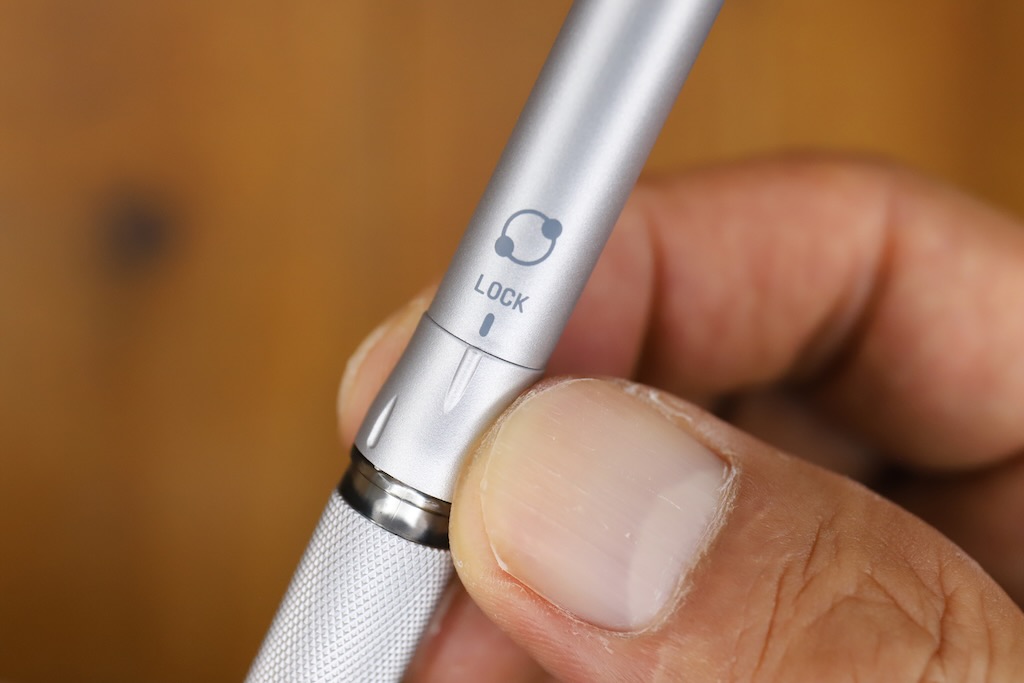 テクトツゥーウェイと言えば、軸を振ることで芯を出す「フリシャ機能」と、そのオンオフ切り替えが大きなポイント。もちろんROにもフリシャ&オンオフは搭載されている。