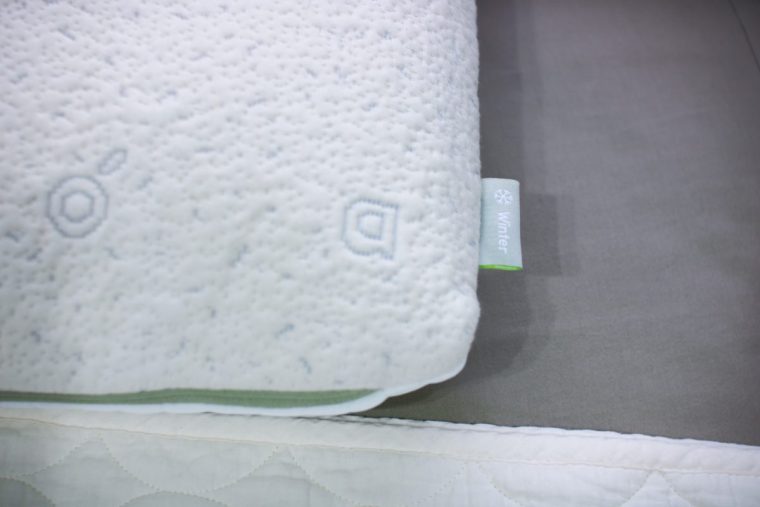 そして、ピロー内側に仕込まれた、“枕表面の余分な熱をすばやく外へ放出してくれる”というPolarBandsの体感はどうだったかといいますと、 接触冷感素材COOLTHREADの効果と混同しそうだったので、カバーを取り外して寝てみました。