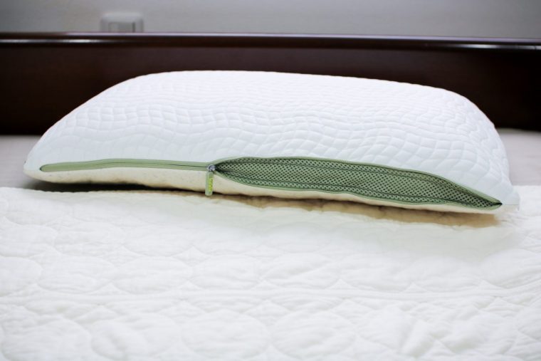 - 枕両側に設置されたファスナーを開閉して硬さを調整できる