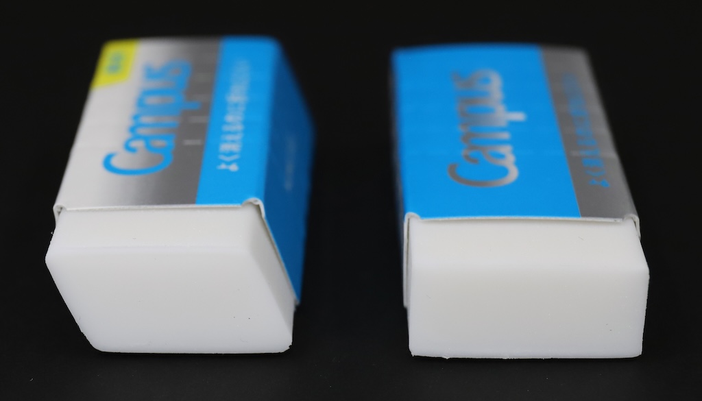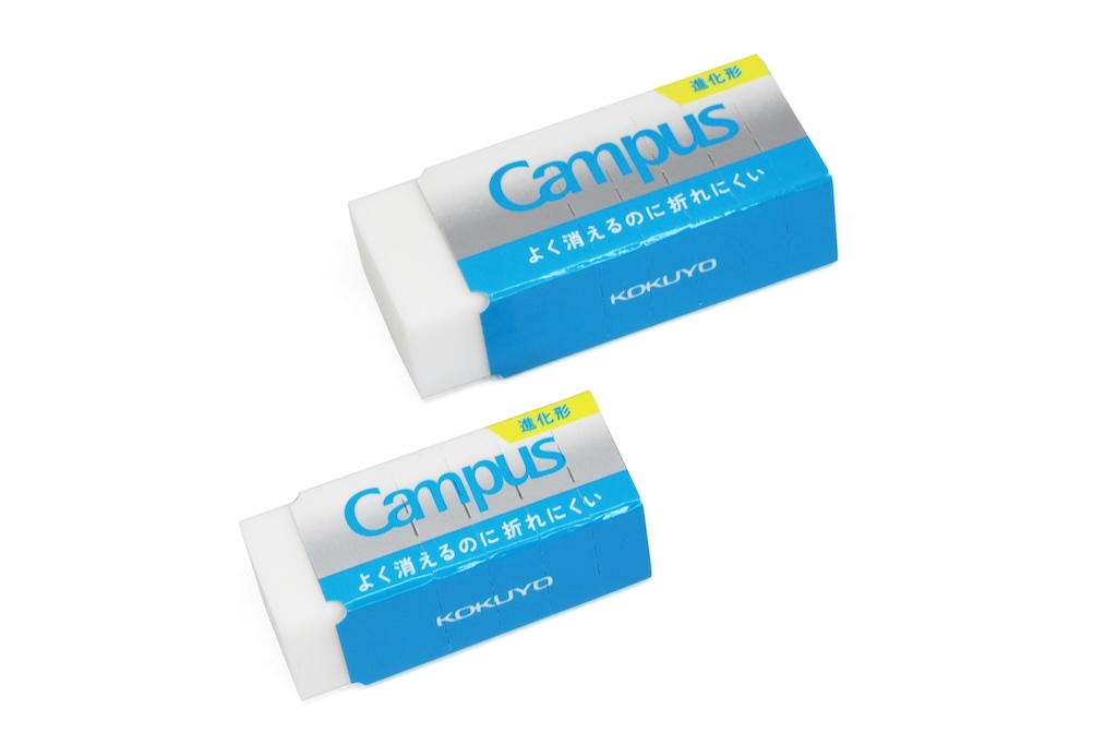 最初に紹介するのは、おなじみコクヨのノート「キャンパス」ブランドから登場した「キャンパス よく消えるのに折れにくい消しゴム 平行四辺形」である。