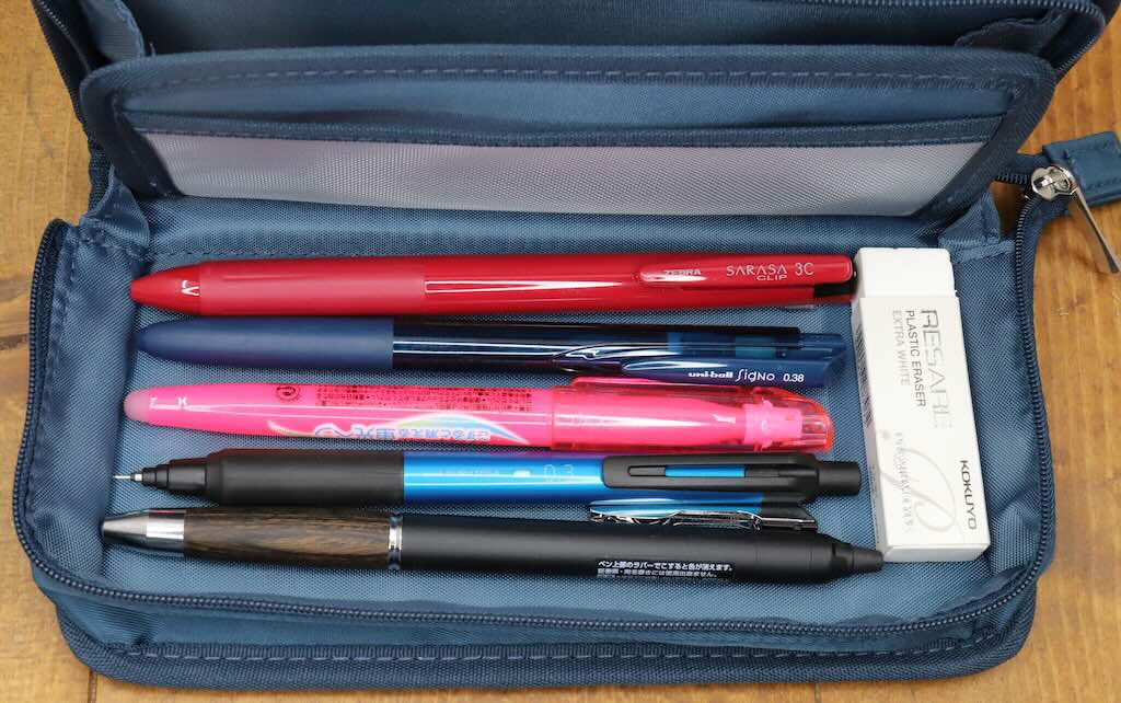 もちろん機動性の点ではジャケットなどのポケットに入れておくのに越したことはないのだけど、それが難しい場合の次善策としては、十分に機能してくれた。なにより、メモ帳と一緒にいちいちペンをポケットに挿しておく必要がない。つまり、すべてペンケースにまとめて収納できるのはスマートだ。