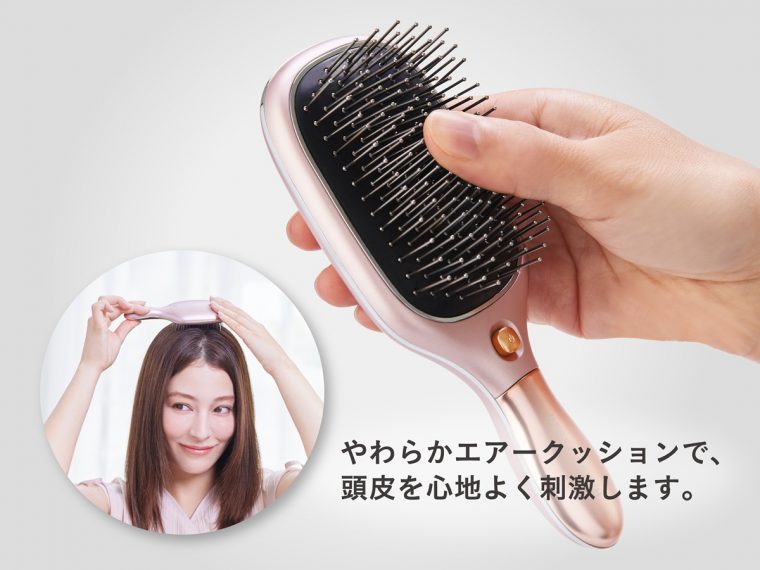やわらかエアークッションとメタルピンを搭載しており、ブラッシングしながら頭皮を心地よく刺激します。