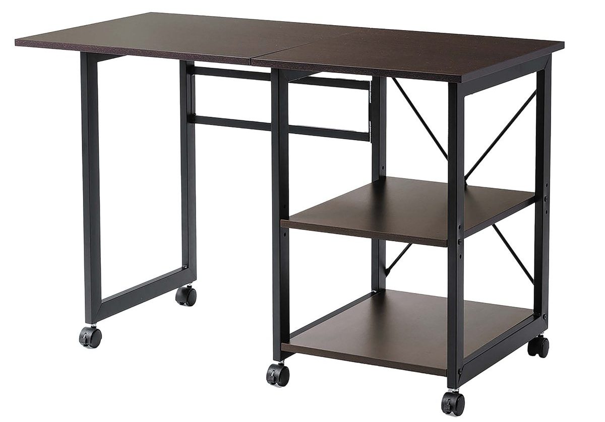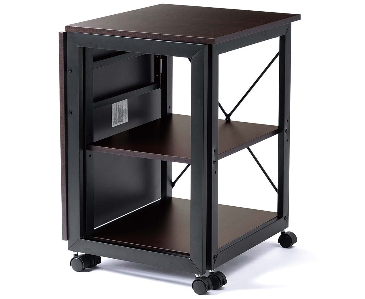 たたむとワゴン、広げるとデスクになる2way仕様。ワゴンの中棚は三段階で高さ調節できる。キャスター付きで移動しやすく、拡張デスクとしても活躍。公式ショップ「サンワダイレクト」限定商品。