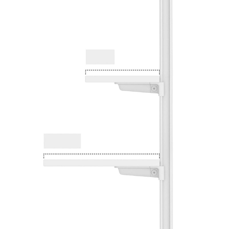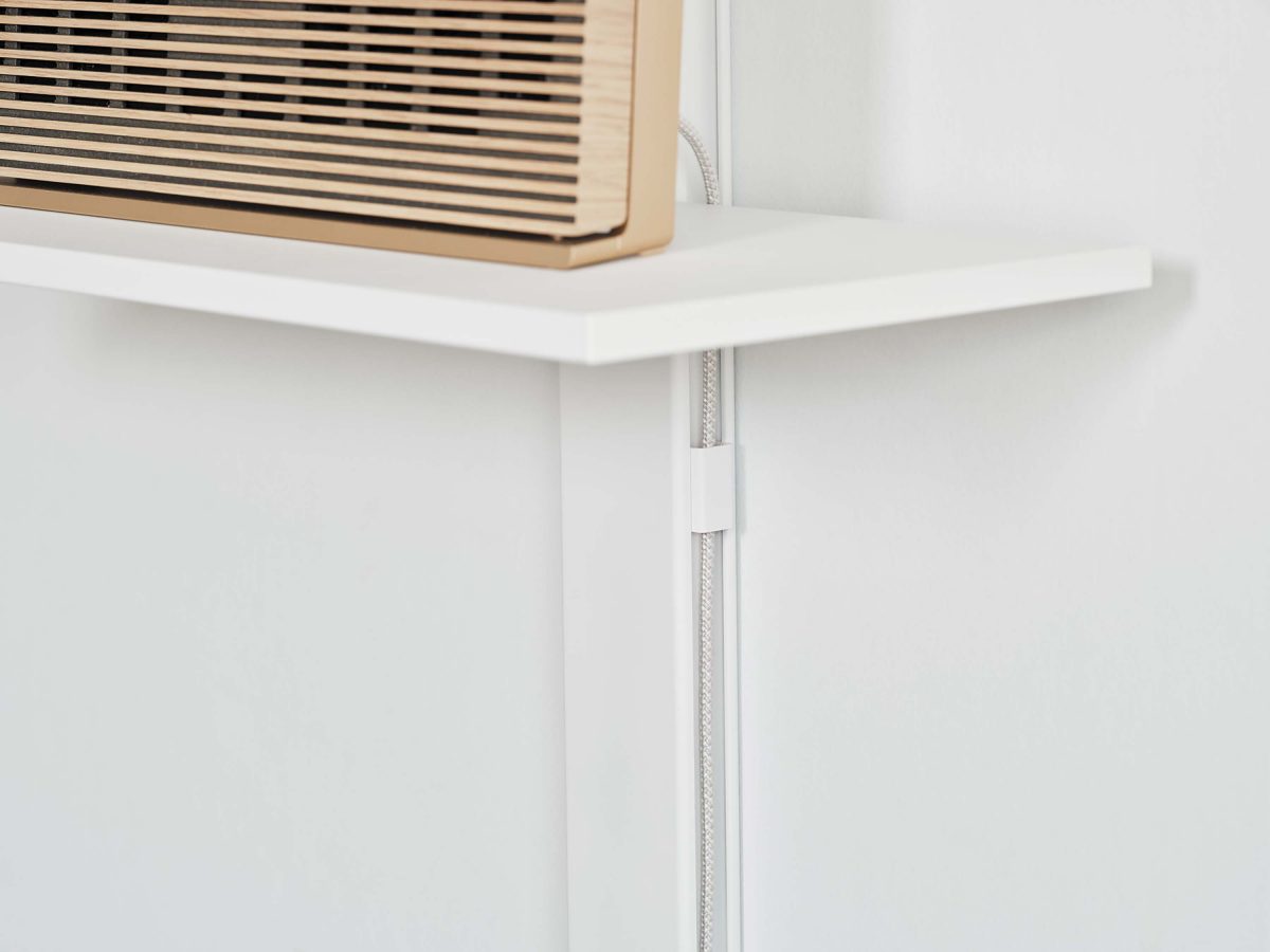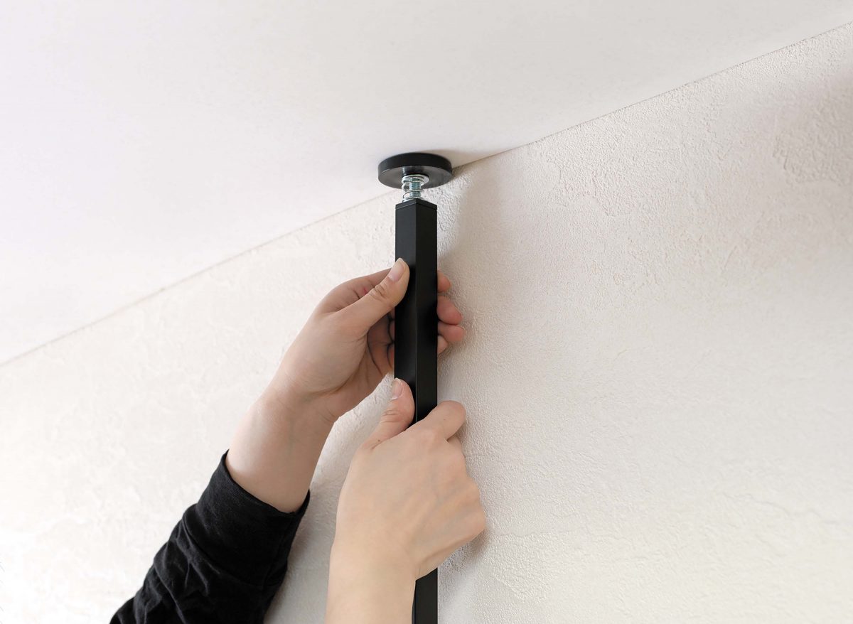 支柱が1本で他の突っ張り収納製品より設置が簡単、かつスッキリした見た目。仕事道具やお気に入りのアイテムを、少ないスペースで置ける。3つの棚とフック1個が付き、別途購入し追加も可能。ブックエンドなどカスタマイズできる別売りアイテムも豊富だ。