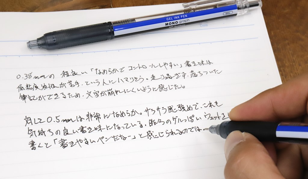 0.5mmはその辺りが強調されてサラサラ感が非常に強く、いかにも“気持ちいいゲルインクボールペン”という印象だ。