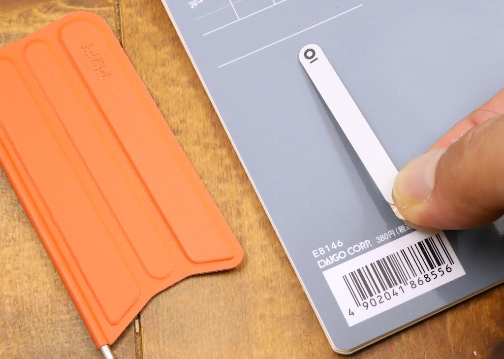 また、粘着シール付きの小さなステンレス板が付属しており、これを手帳の表紙などに貼り付けておくと、本体に内蔵された磁石でピタリとくっつけておくことも可能だ。