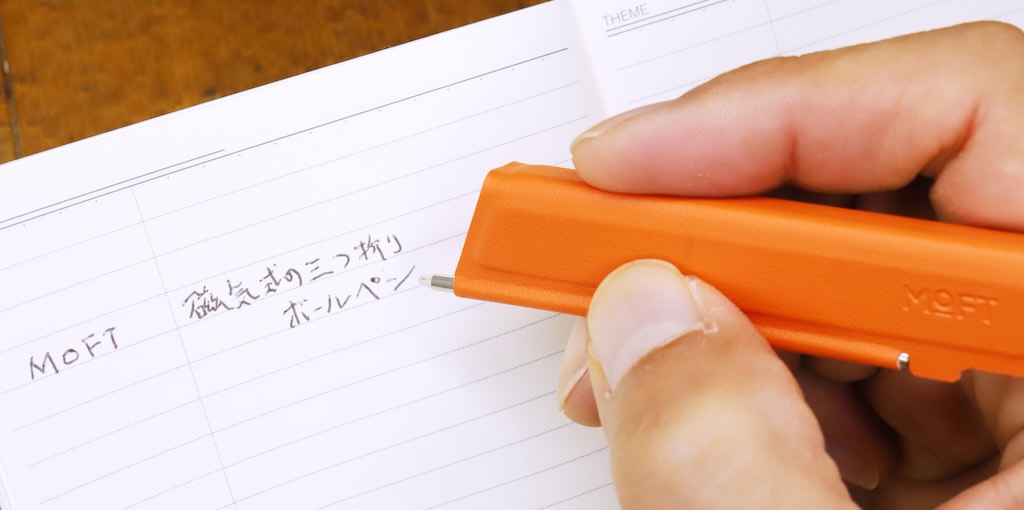 そこで、もうひとつ携帯しやすい手帳用ペンとして提案したいのが、MOFT「磁気式の三つ折りボールペン」である。