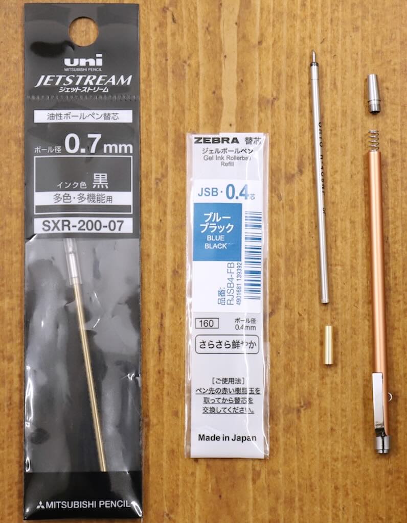 リフィルは、多色ボールペンで広く使われている金属芯4C規格互換なので、お好みで油性でもゲルでも差し替えられるのはうれしいところ。