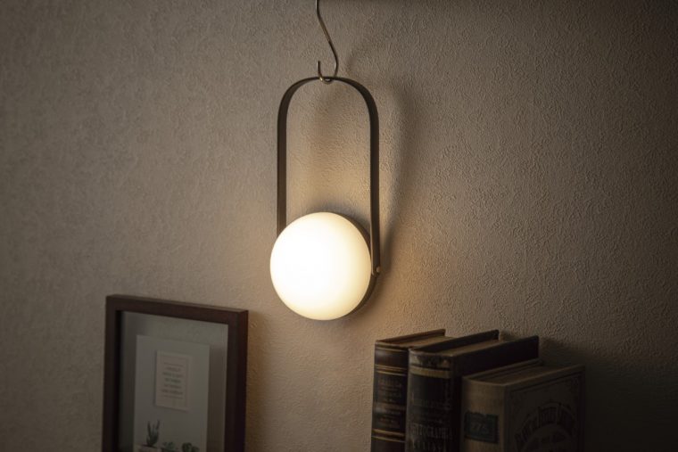 「コードレスLEDランタン NT2403」は、ハンドル付きで落ち着いたデザインが特徴。ベッドサイドランプとして置いて使えるだけでなく、ハンドルが前後に可動するため、壁に掛けてウォールランプとしても使えます。