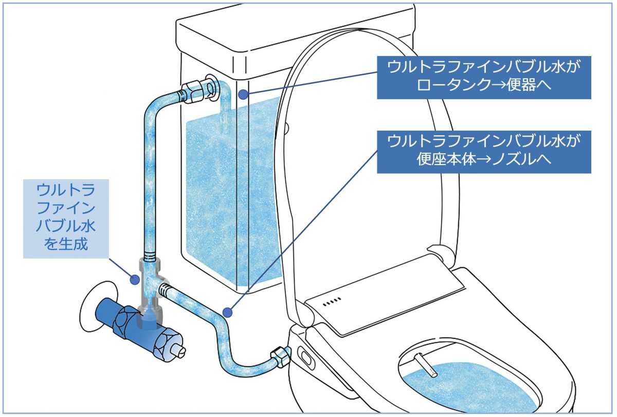 便器・ロータンク・ノズルにウルトラファインバブル水!