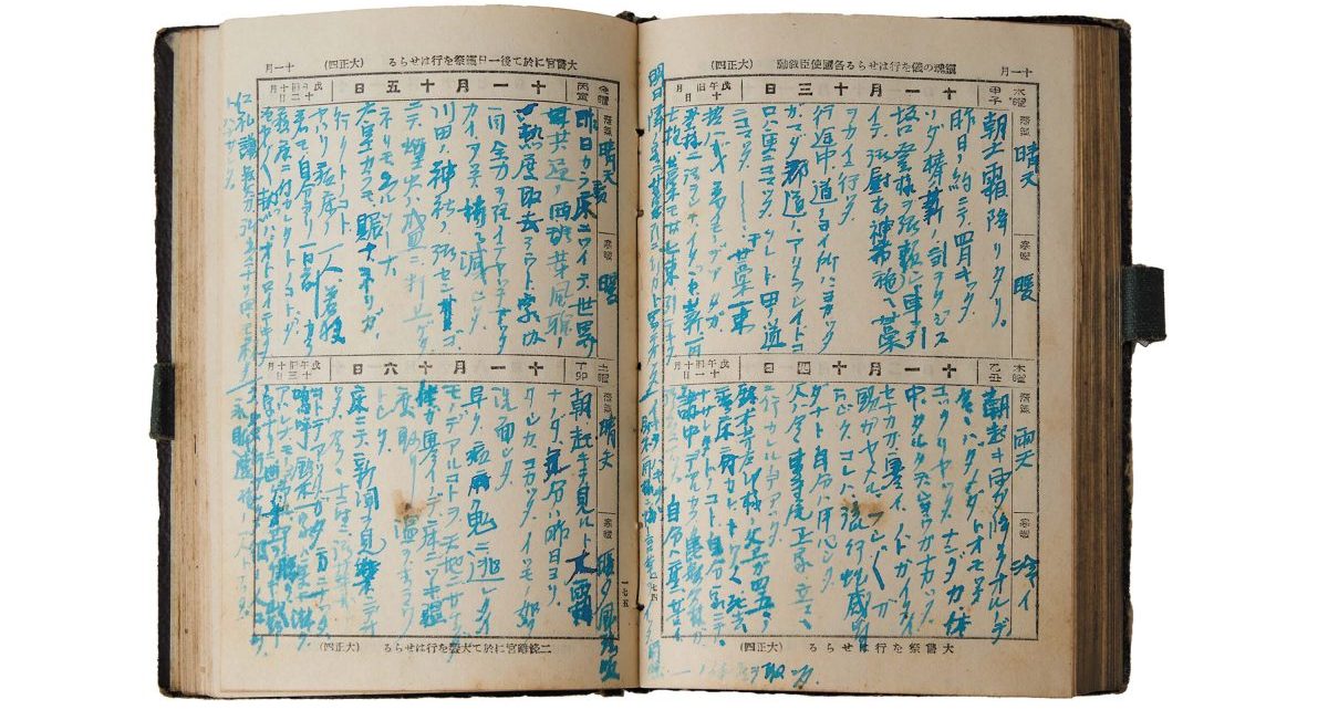 大正7年の日記。骨董市で見つけたという日記を寄贈してもらったそう。フォーマットや文字に、時代の空気を感じる。
