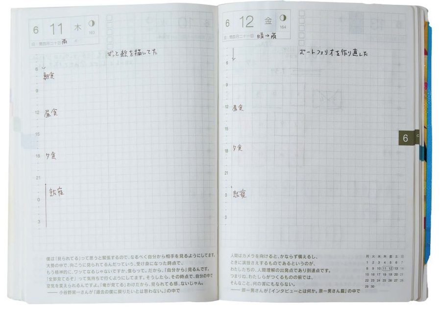 そして、「手帳は我々一般人が生きた証を残せる重要なツールだ」と続ける。「歴史に名を刻む人たち以外、僕たち一般の人間は、いつか存在が無になる。でもそういった人たちも何かの形で生きた証を残していいと思うし、手帳類は、誰とも違う自分をより私的なまま残せるツールだと思います。僕は手帳類を通じ、ひとつとして同じものはない、“最適化されていない唯一無二の私的さ”をたくさん見てきたし、多くの方に見てもらいたいと思っています。自分もそのひとりなんだと感じられたなら、書き残す価値も見えてくるのではないでしょうか」