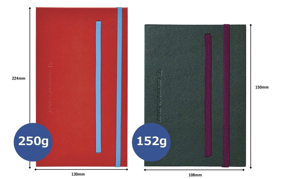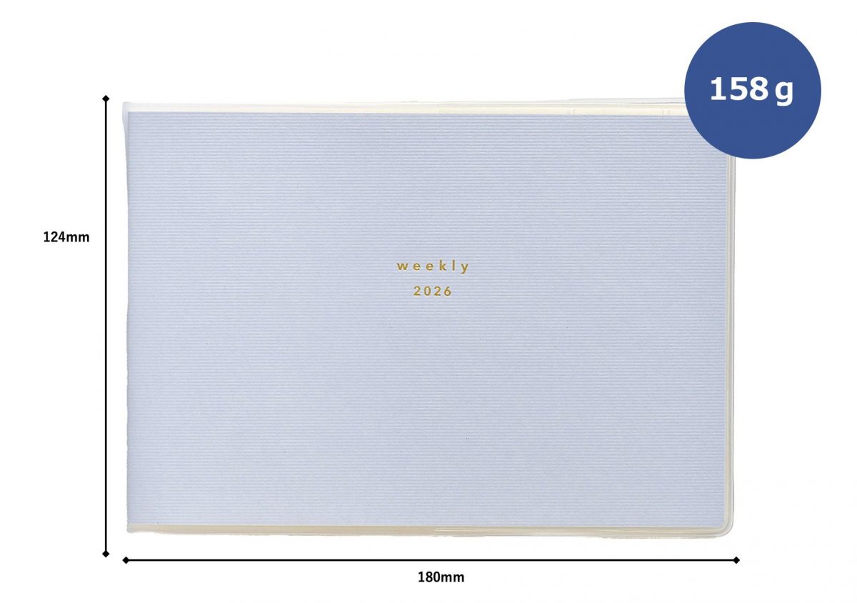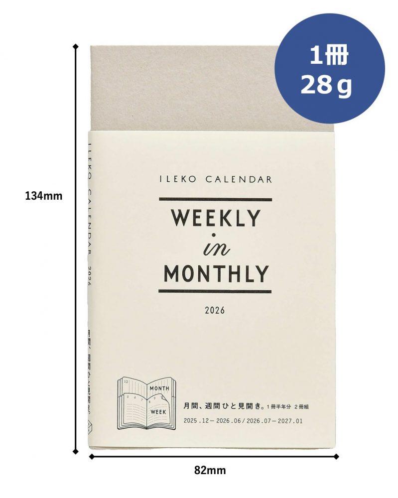 上段の月間を開いたまま、下段の週間をめくることができる“入れ子”式。半年ごとの2冊セットで、1冊の厚みはたった4mm。ノートのカバーや長財布に挟んで持ち運べる。2冊をまとめる透明バンド付き。