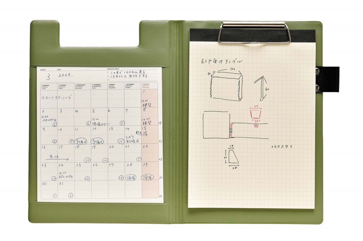 スケジュール管理をしながら立ったままメモも書ける、クリップボードタイプ。付属のマンスリーは6か月分で日付記入式だ。別売りでリフィルもあり、さらに日付入りのマンスリーやガントチャートなどもある。